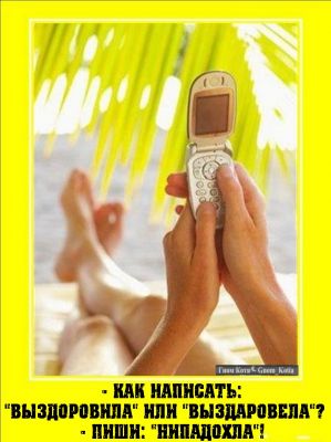 | Свежий анекдотик ))) Для пиндосика))) - Вчера с таким парнем познакомилась - просто красавчик! Проводил меня до самого дома, как культурный человек. - Могла бы его на чашечку чая пригласить, а там, глядишь, то да сё. - А я по твоему - дура беспросветная? Мне эта мысль сразу в голову пришла, но потом вспомнила, что чай на днях кончился, и дома есть только кофе. Добавлено (16.06.2010, 15:59) --------------------------------------------- ============================================== Памятка маленькому коту-засранцу: твое счастье, находящееся между лапами, надодится только в твоих лапах. Добавлено (16.06.2010, 16:49) --------------------------------------------- ЕСТЬ ЖЕНЩИНА - ЕСТЬ ПРОБЛЕМА ,НЕТ ЖЕНЩИНЫ - ТОЖЕ ПРОБЛЕМА )))) ыыыыыы